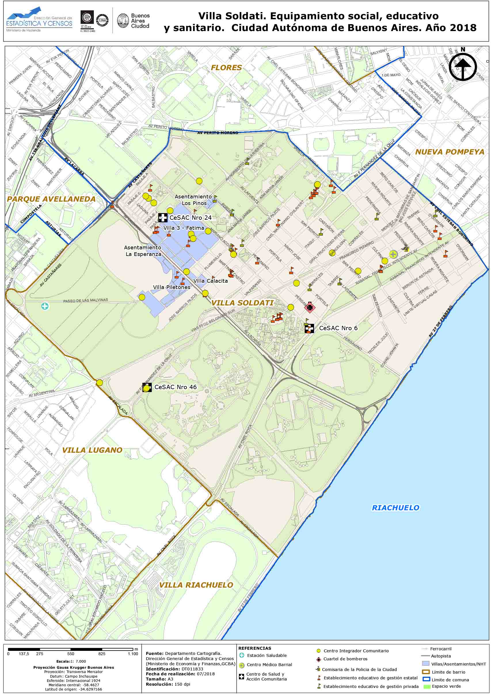 Villa Soldati. Equipamiento social, educativo y sanitario. Ciudad Autónoma de Buenos Aires. Año 2018