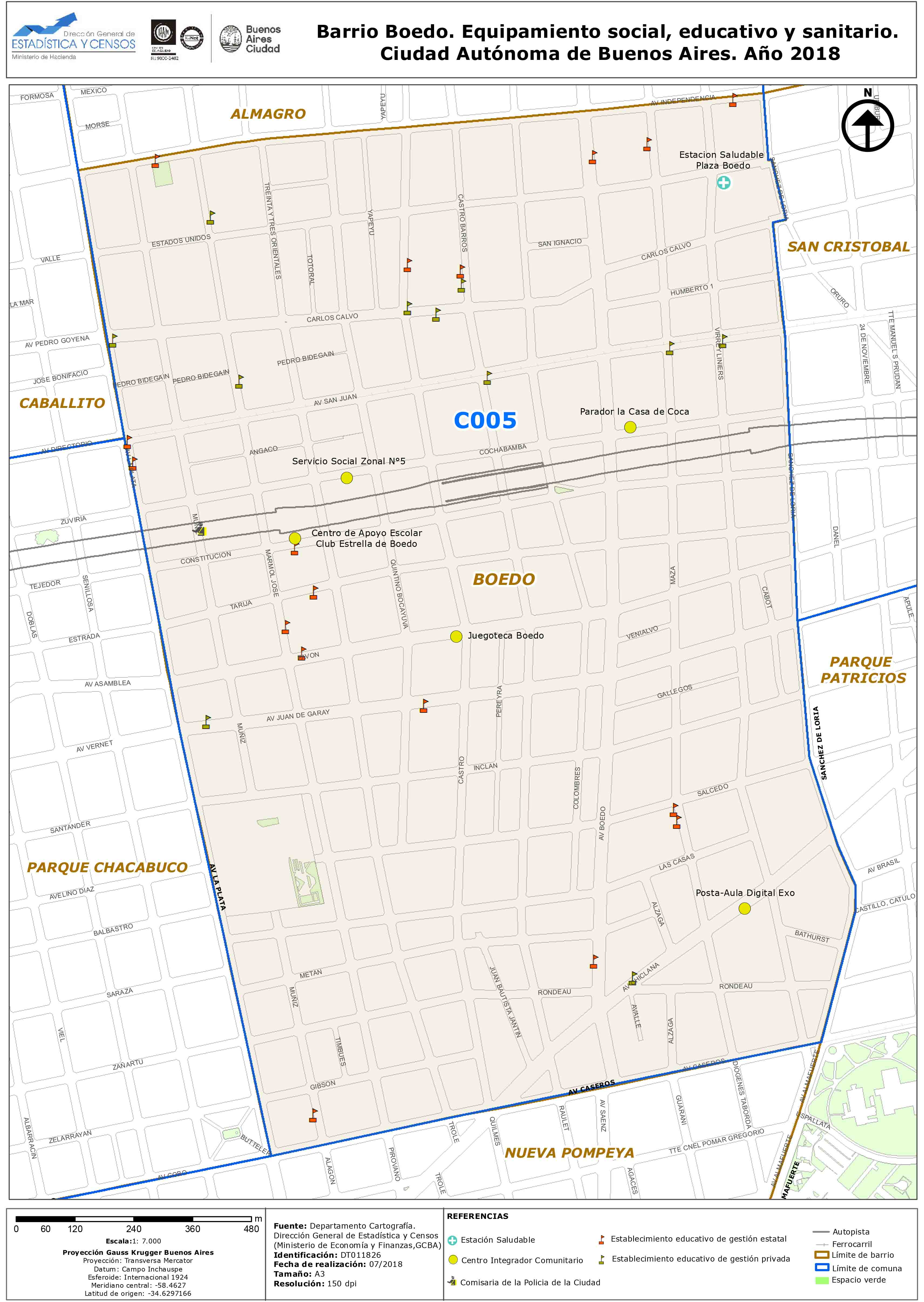 Barrio Boedo. Equipamiento social, educativo y sanitario. Ciudad Autónoma de Buenos Aires. Año 2018