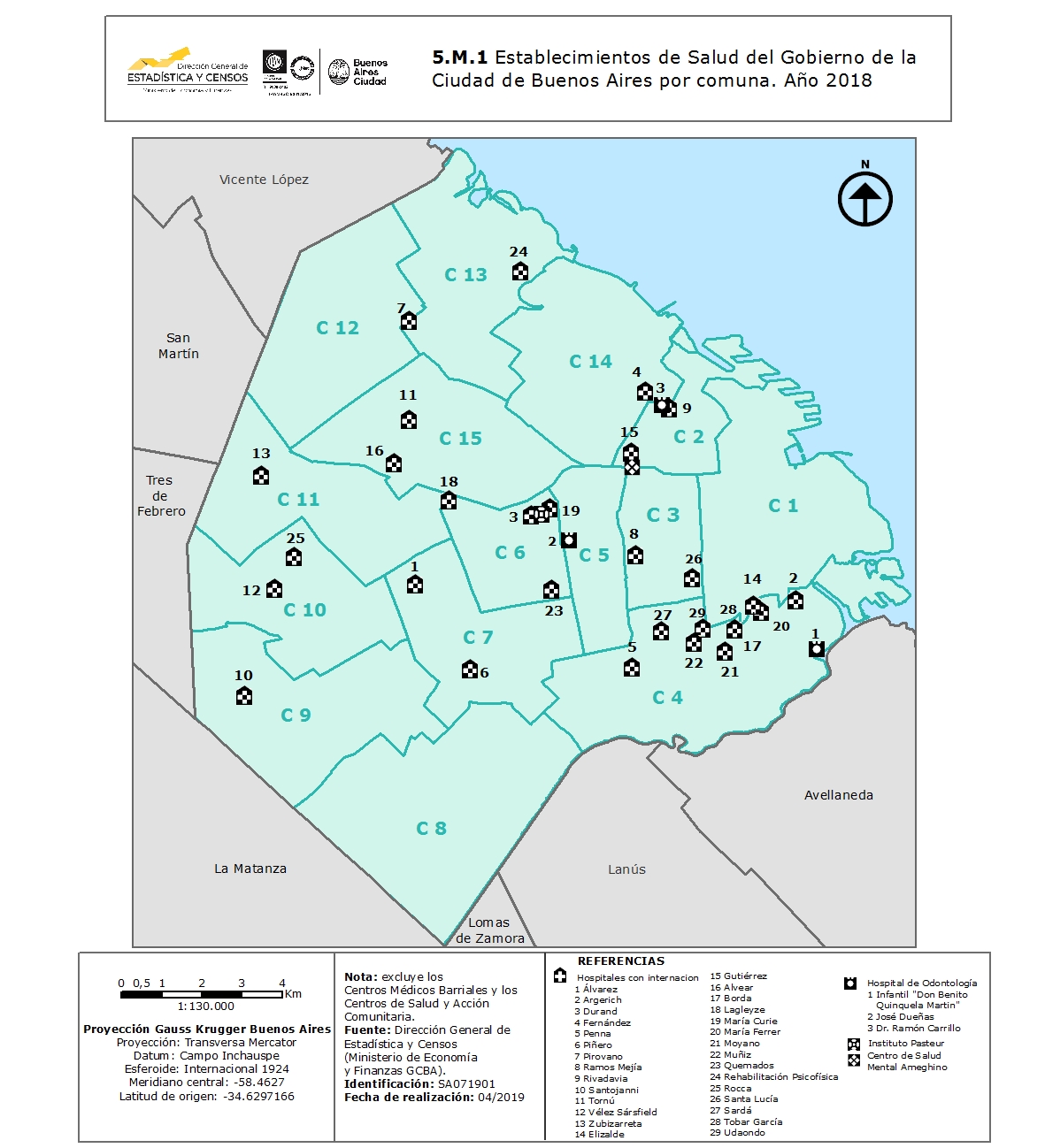 Establecimientos de Salud del Gobierno de la Ciudad de Buenos Aires por comuna. Año 2018