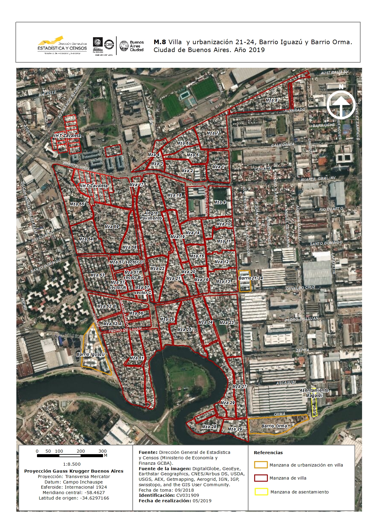 M.8. Villa y Urbanización 21-24, Barrio Iguazú y Barrio Orma . Ciudad de Buenos Aires. Año 2019