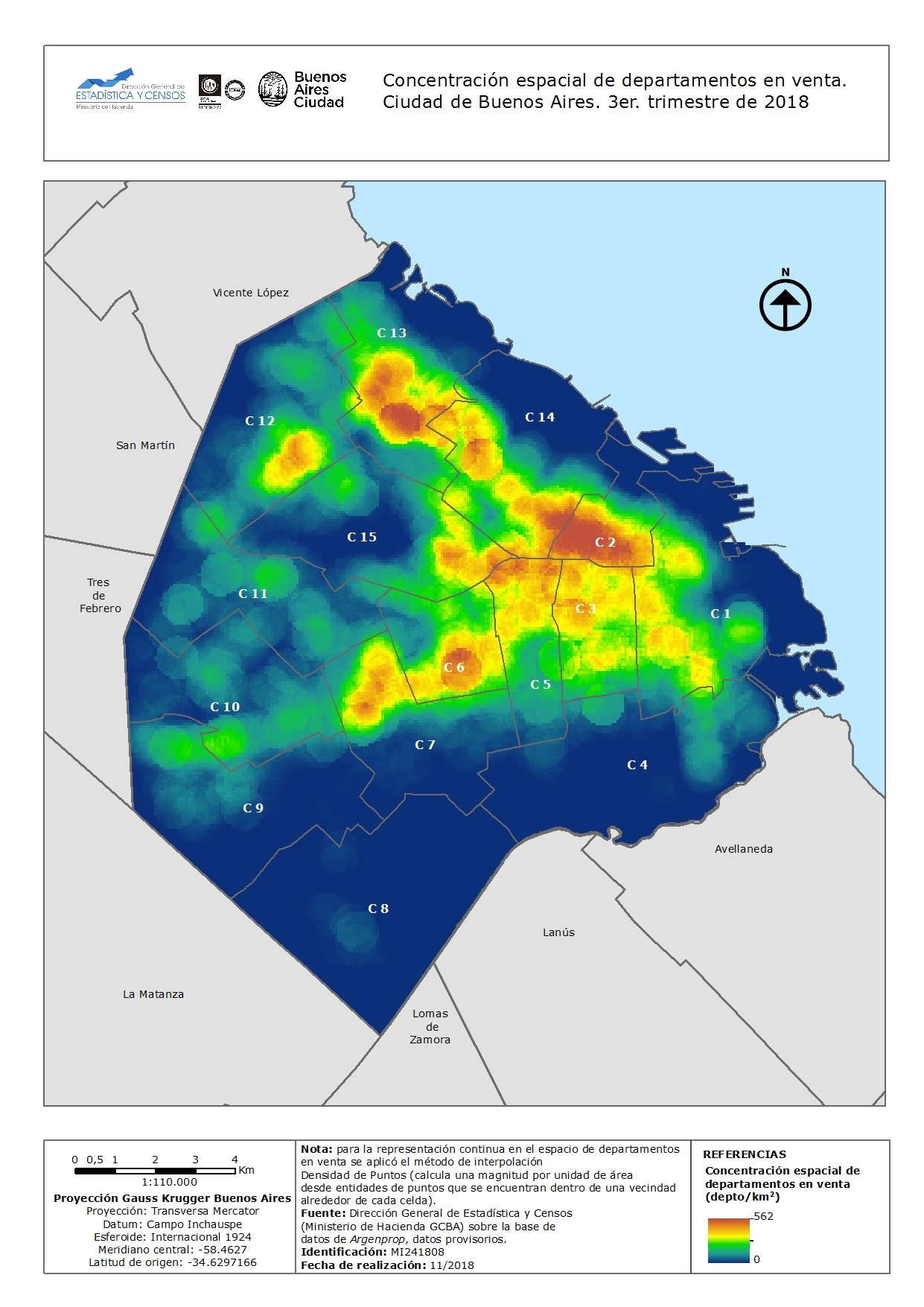 Concentración espacial de departamentos en venta. 3do. trimestre de 2018 Ciudad de Buenos Aires Año 2018