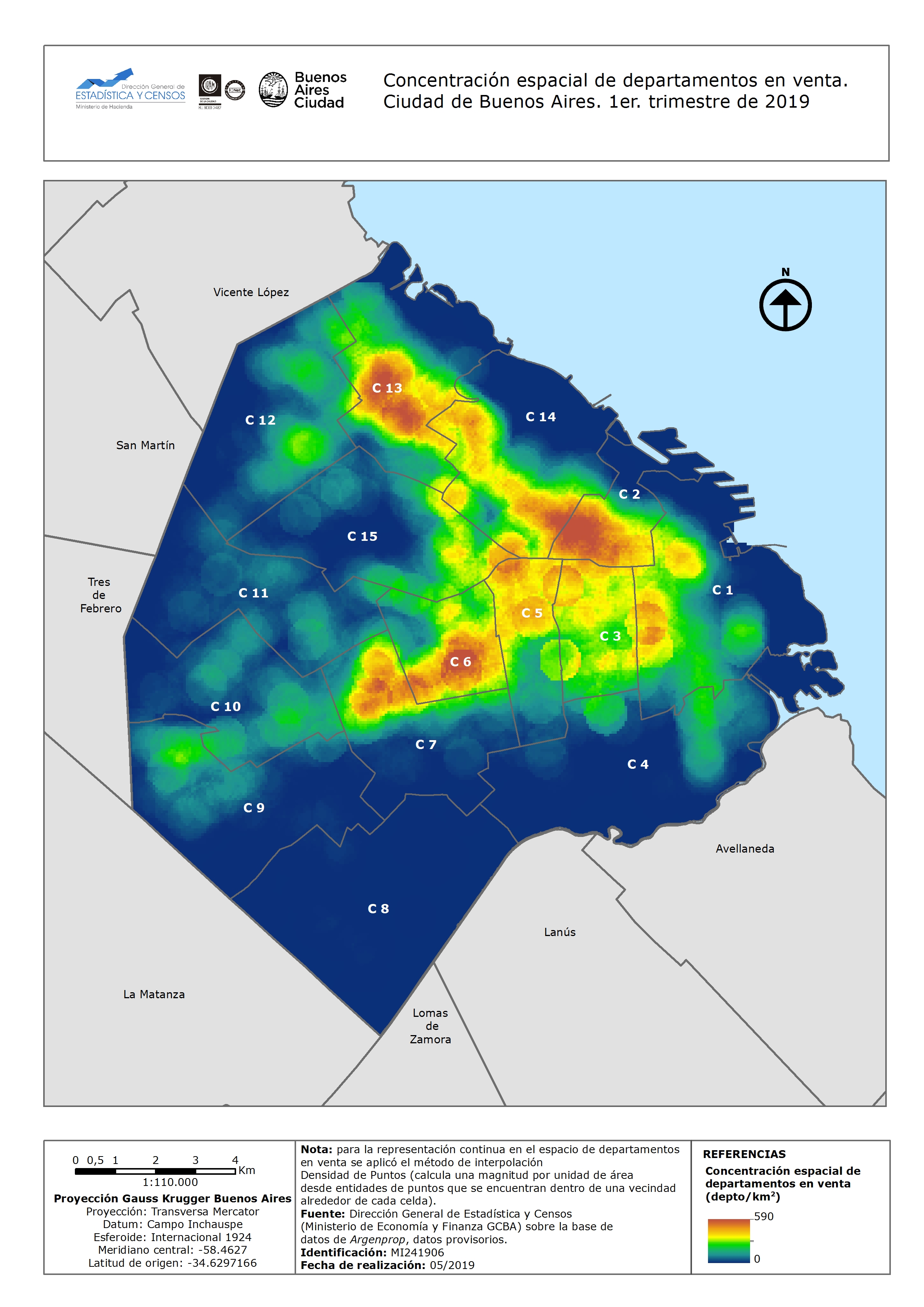 Concentración espacial de departamentos en venta. 1er. trimestre de 2019 Ciudad de Buenos Aires Año 2019