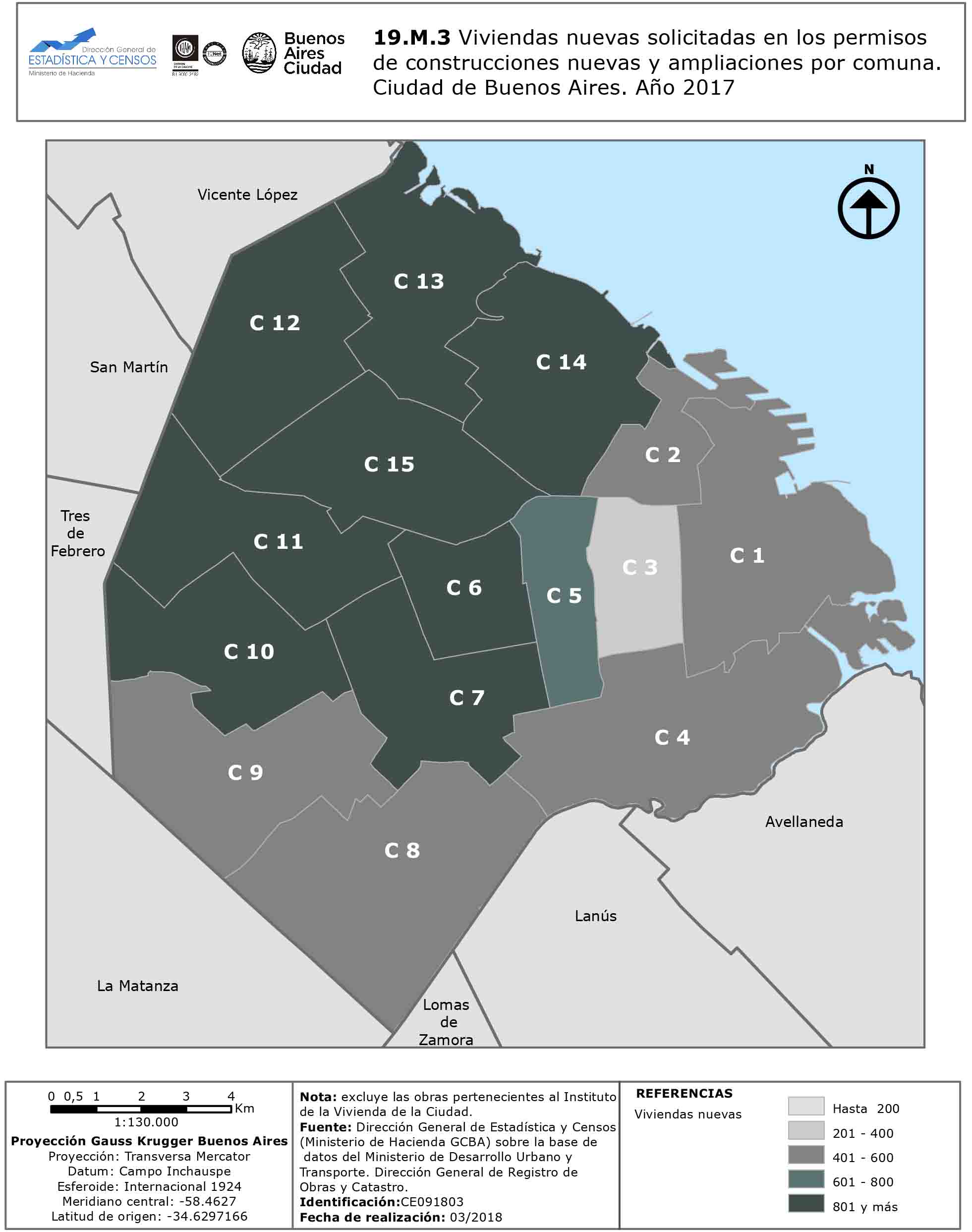 Viviendas nuevas solicitadas en los permisos de construcciones nuevas y ampliaciones por comuna. Ciudad de Buenos Aires. Año 2017