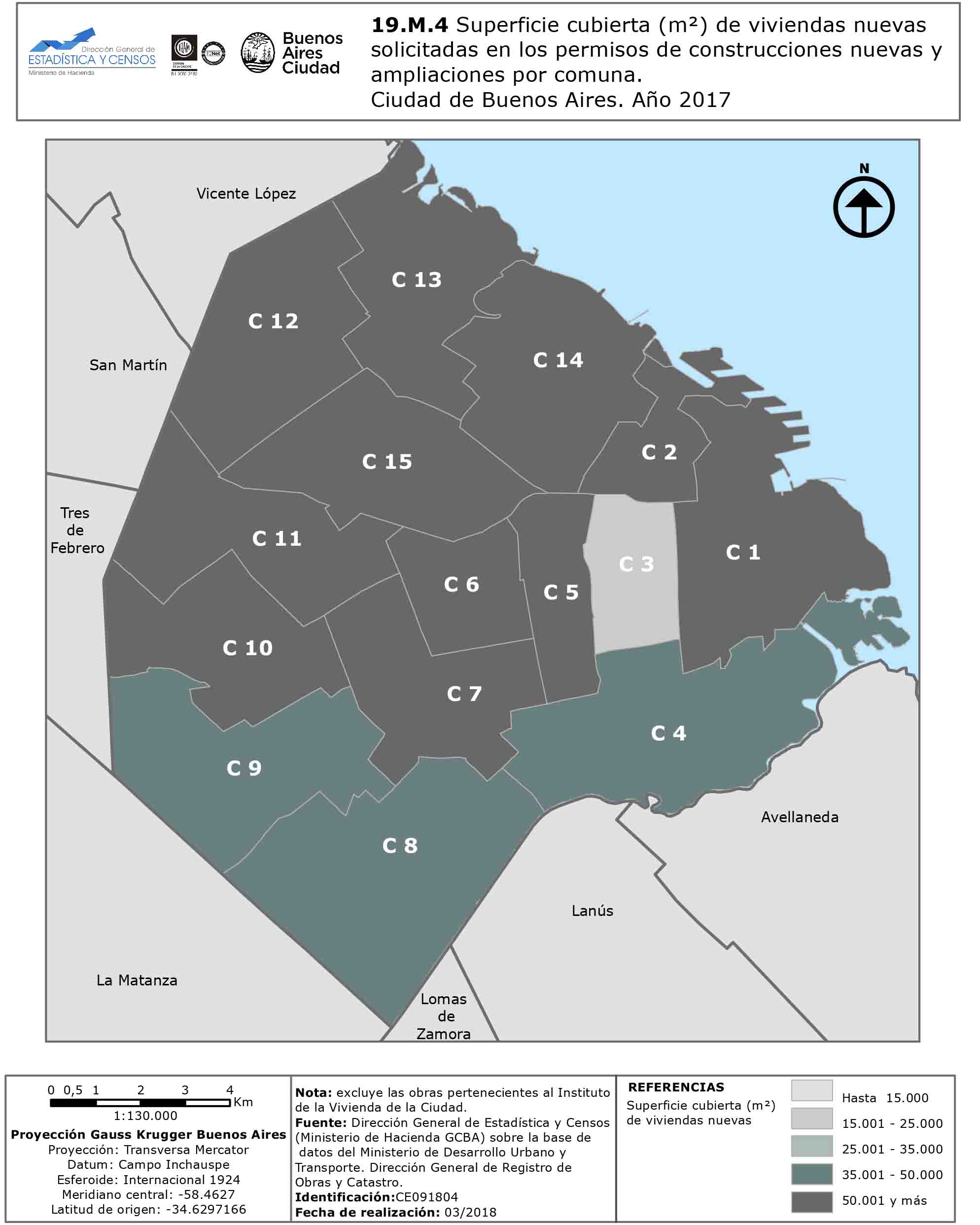 Superficie cubierta (m²) de viviendas nuevas solicitadas en los permisos de construcciones nuevas y ampliaciones por comuna. Ciudad de Buenos Aires. Año 2017
