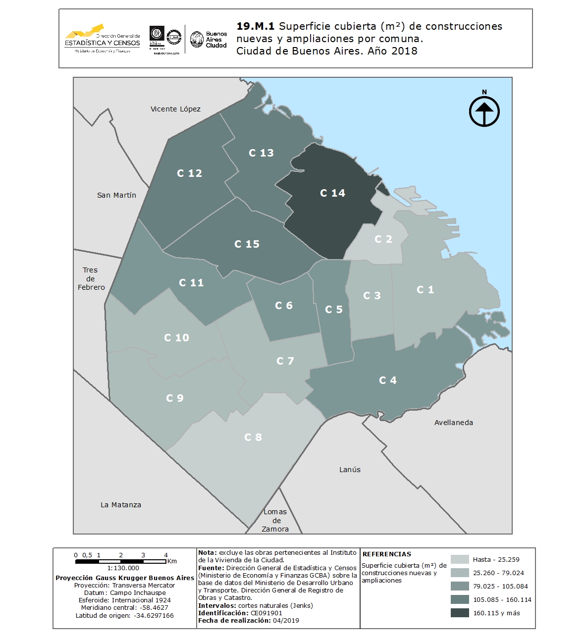 Superficie cubierta (m²) de construcciones nuevas y ampliaciones por comuna. Ciudad de Buenos Aires. Año 2018