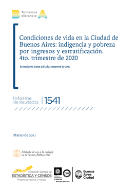 • Título: Condiciones de vida en la Ciudad de Buenos Aires: indigencia y pobreza por ingresos y estratificación. 4to. trimestre de 2020