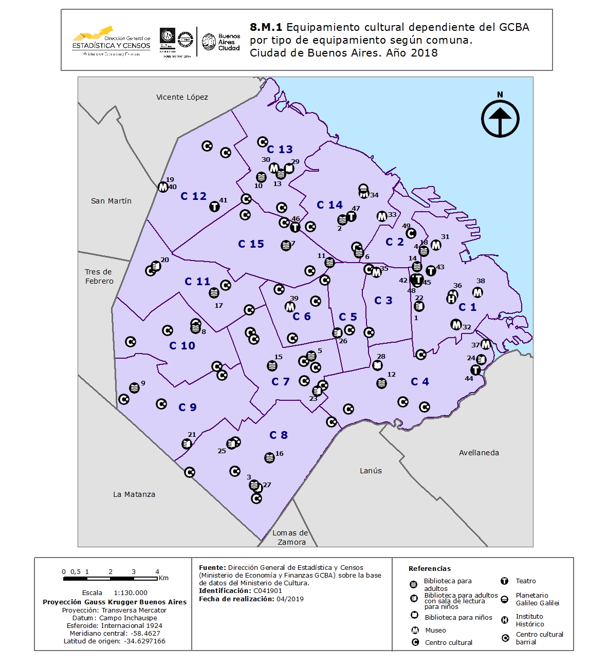 Equipamiento cultural dependiente de GCBA por tipo de equipamiento según comuna.Ciudad de Buenos Aires. Año 2018
