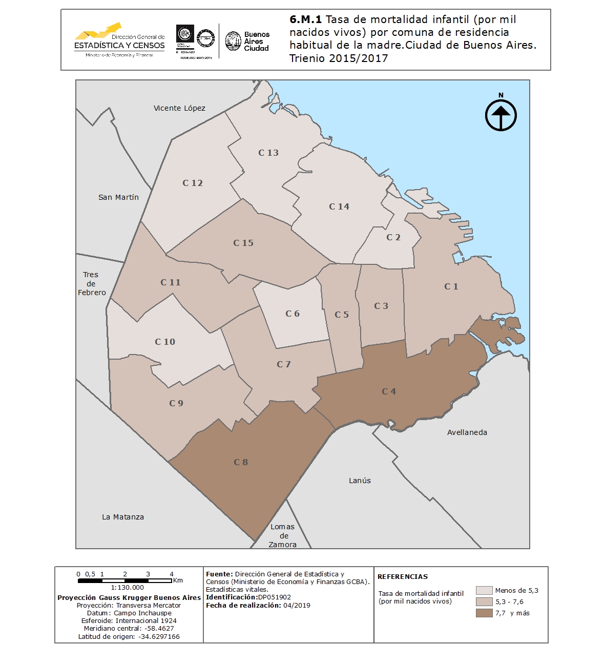 Tasa de mortalidad infantil (por mil nacidos vivos) por comuna de residencia habitual de la madre.Ciudad de Buenos Aires. Trienio 2015/2017