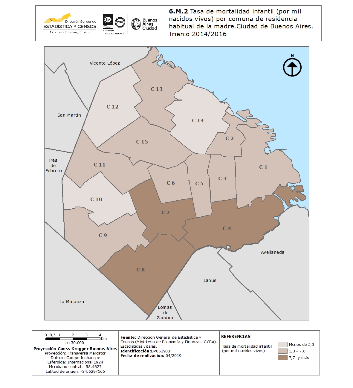 Tasa de mortalidad infantil (por mil nacidos vivos) por comuna de residencia habitual de la madre.Ciudad de Buenos Aires. Trienio 2014/2016