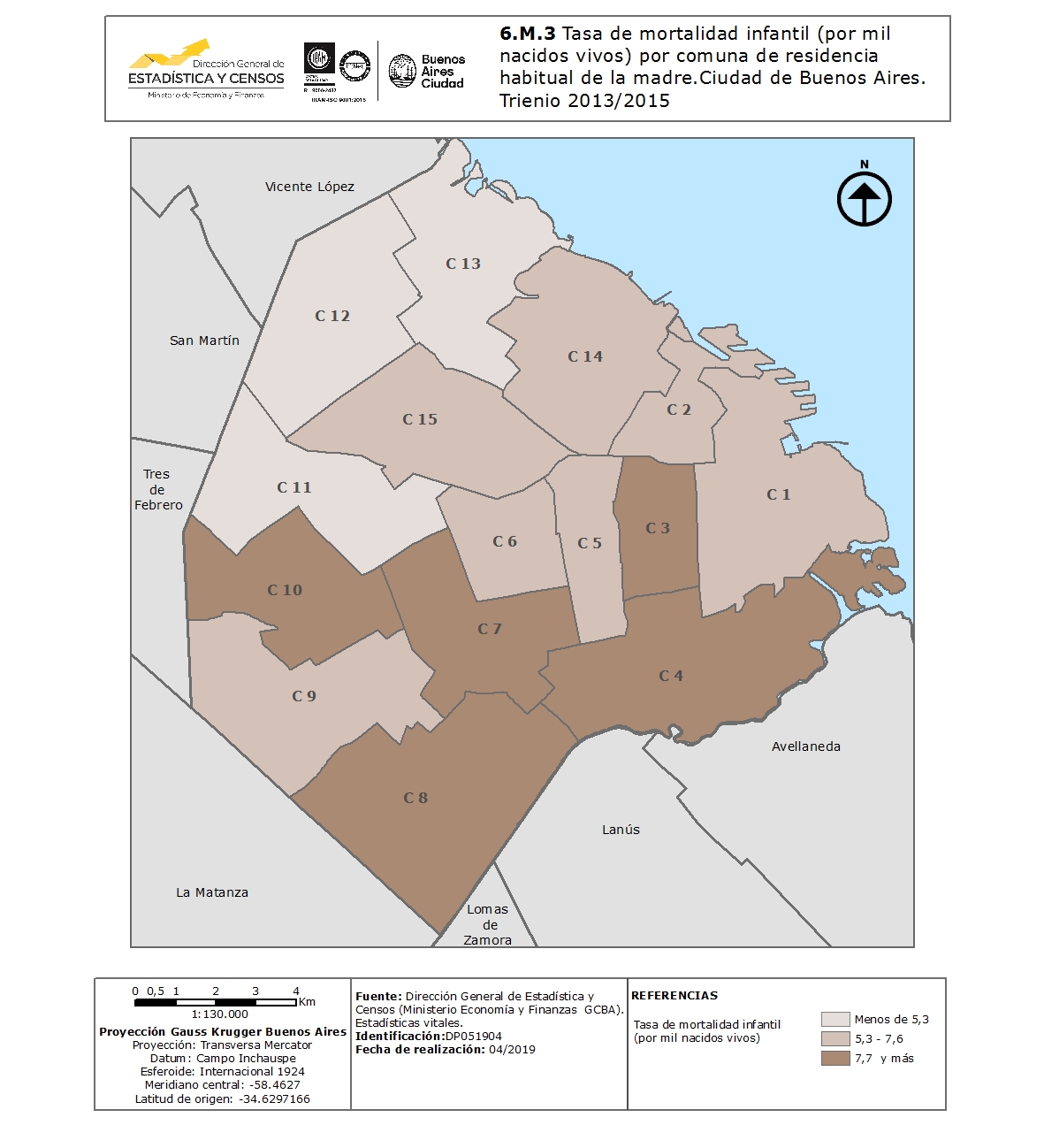 Tasa de mortalidad infantil (por mil nacidos vivos) por comuna de residencia habitual de la madre.Ciudad de Buenos Aires. Trienio 2013/2015