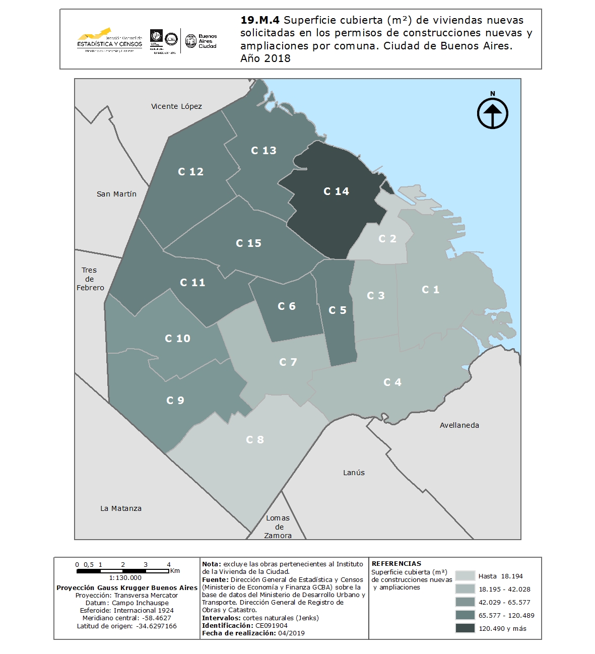 Superficie cubierta (m²) de viviendas nuevas solicitadas en los permisos de construcciones nuevas y ampliaciones por comuna. Ciudad de Buenos Aires. Año 2018