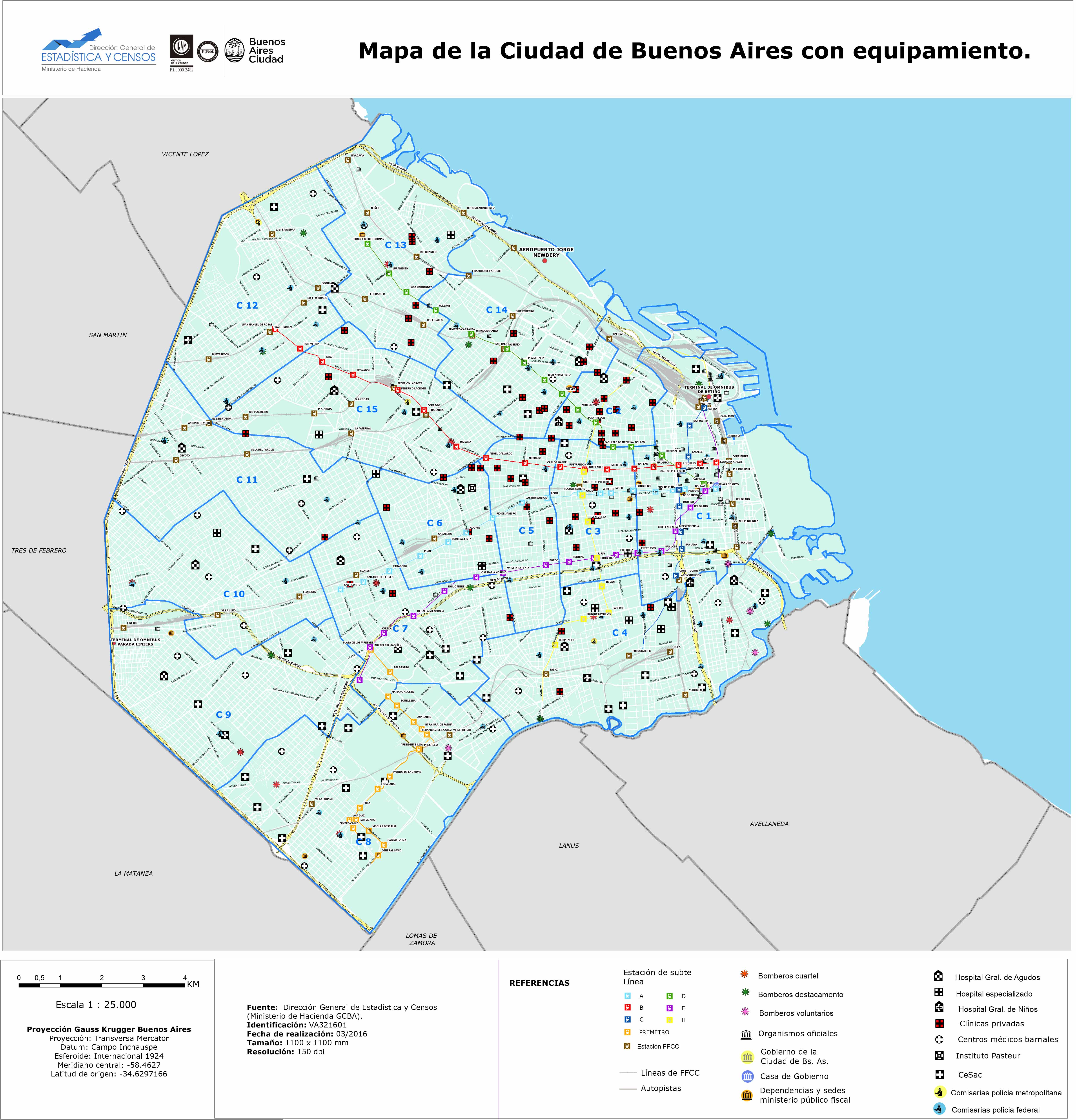 Mapa de la Ciudad de Buenos Aires con equipamiento
