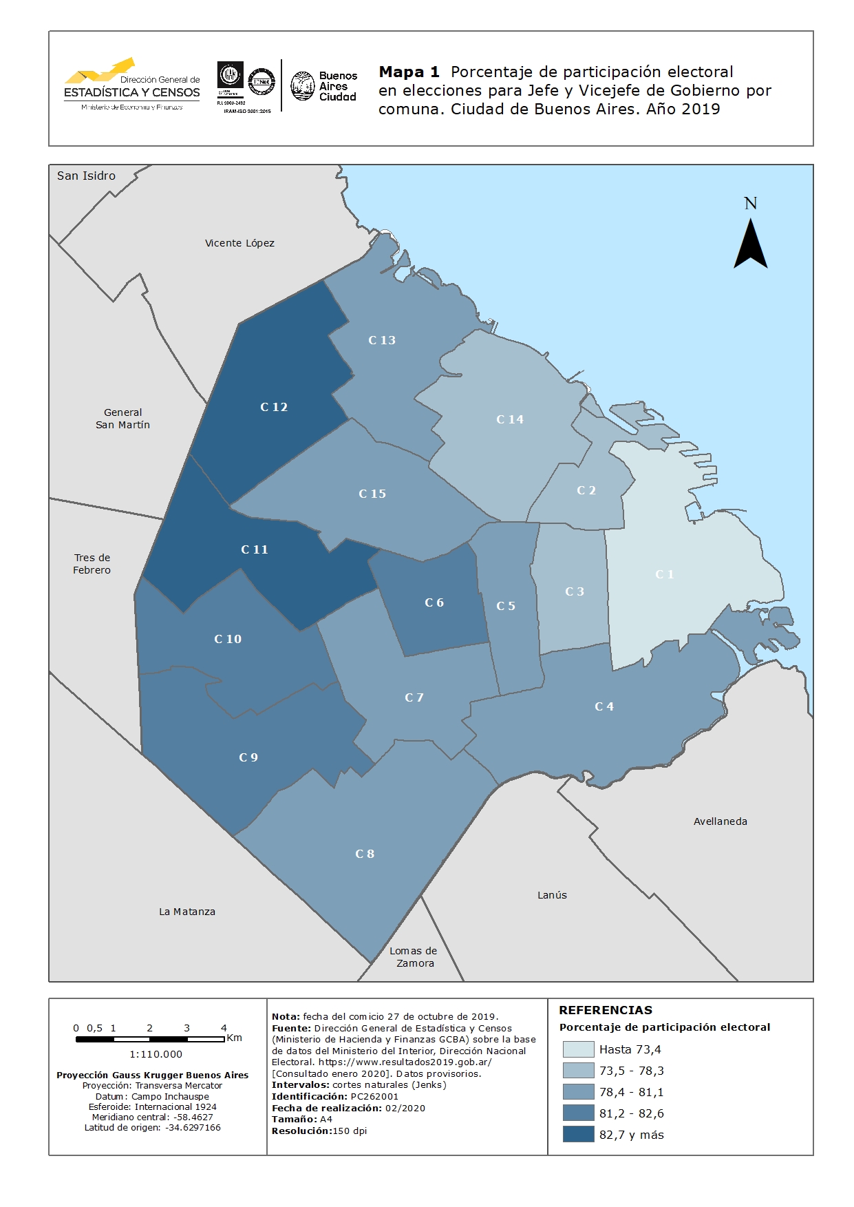 Porcentaje de participación electoral en elecciones para Jefe y Vicejefe de Gobierno por comuna. Ciudad de Buenos Aires. Año 2019