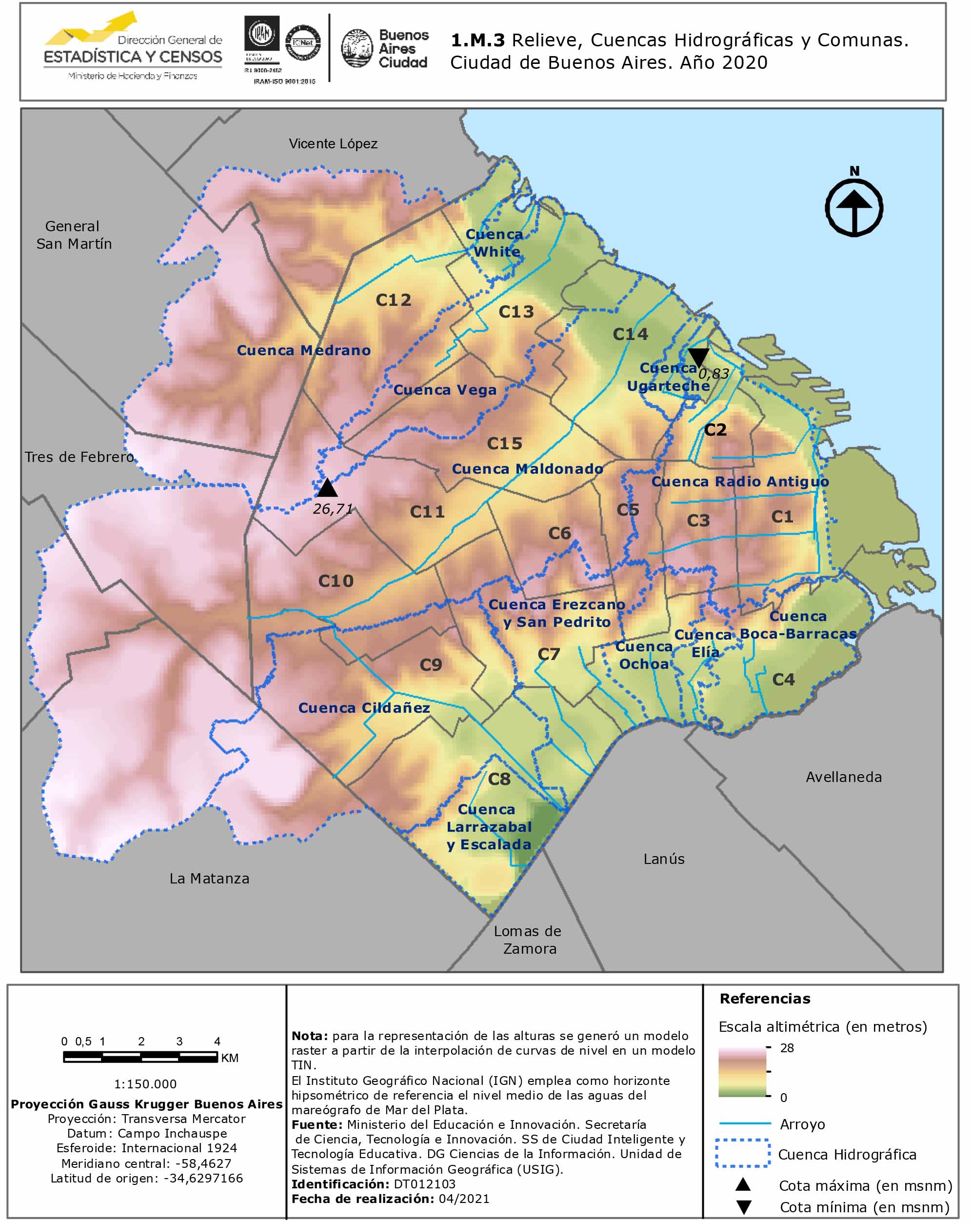 Relieve, Cuencas Hidrográficas y Comunas. Ciudad de Buenos Aires. Año 2020