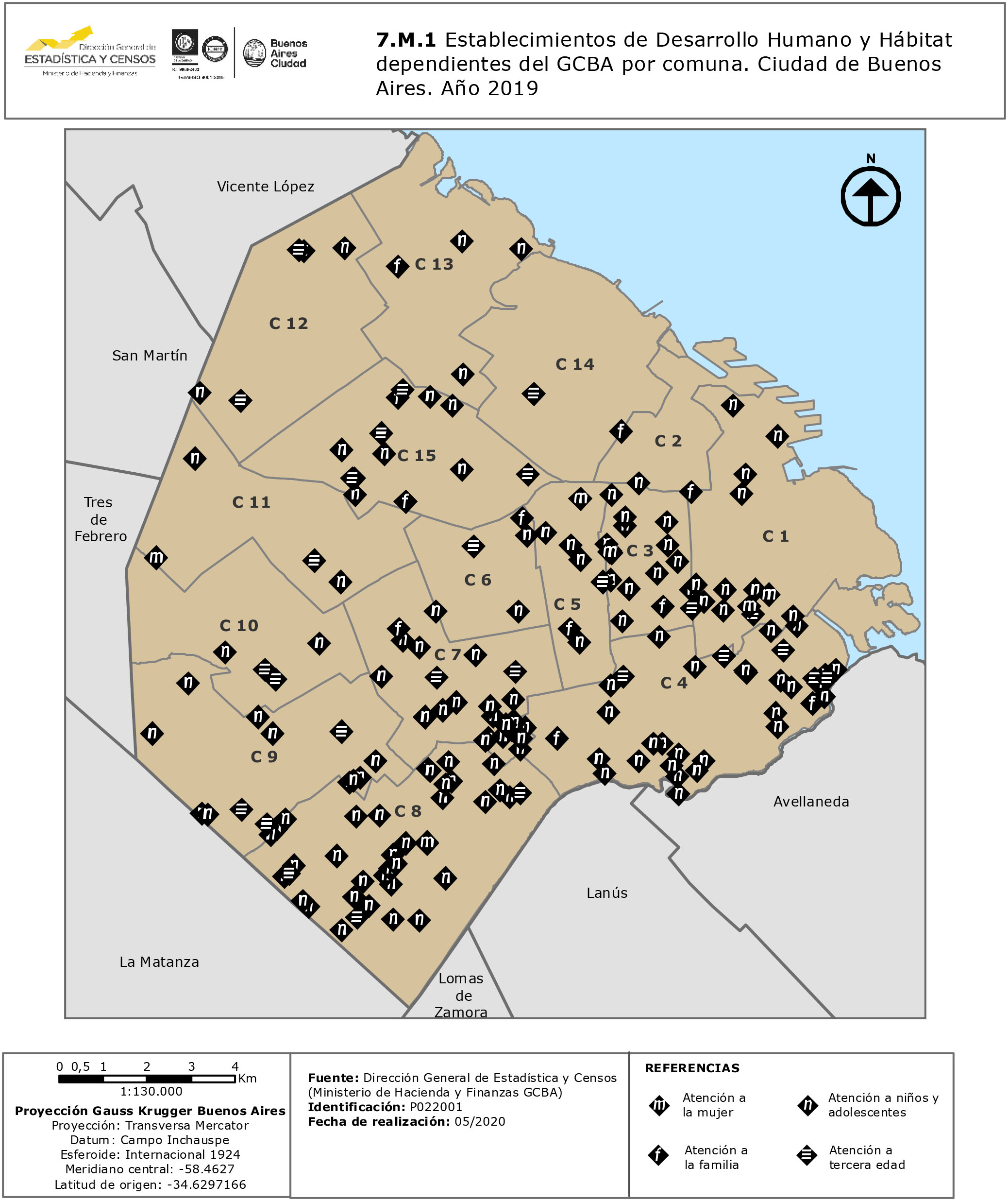 Establecimientos de Desarrollo Humano y Hábitat dependientes del GCBA por comuna. Ciudad de Buenos Aires. Año 2019