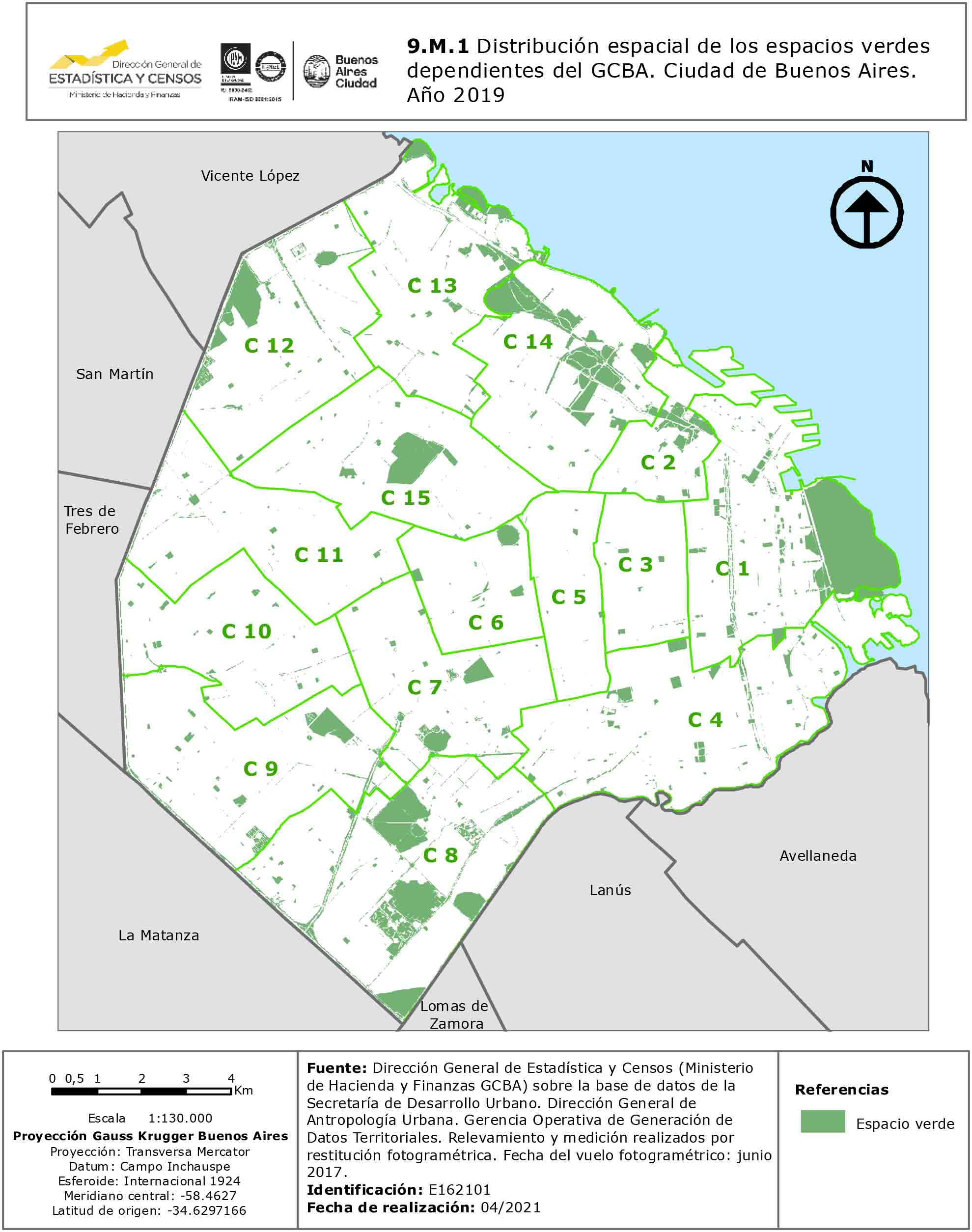 Distribución espacial de los espacios verdes dependientes del GCBA. Ciudad de Buenos Aires. Año 2019