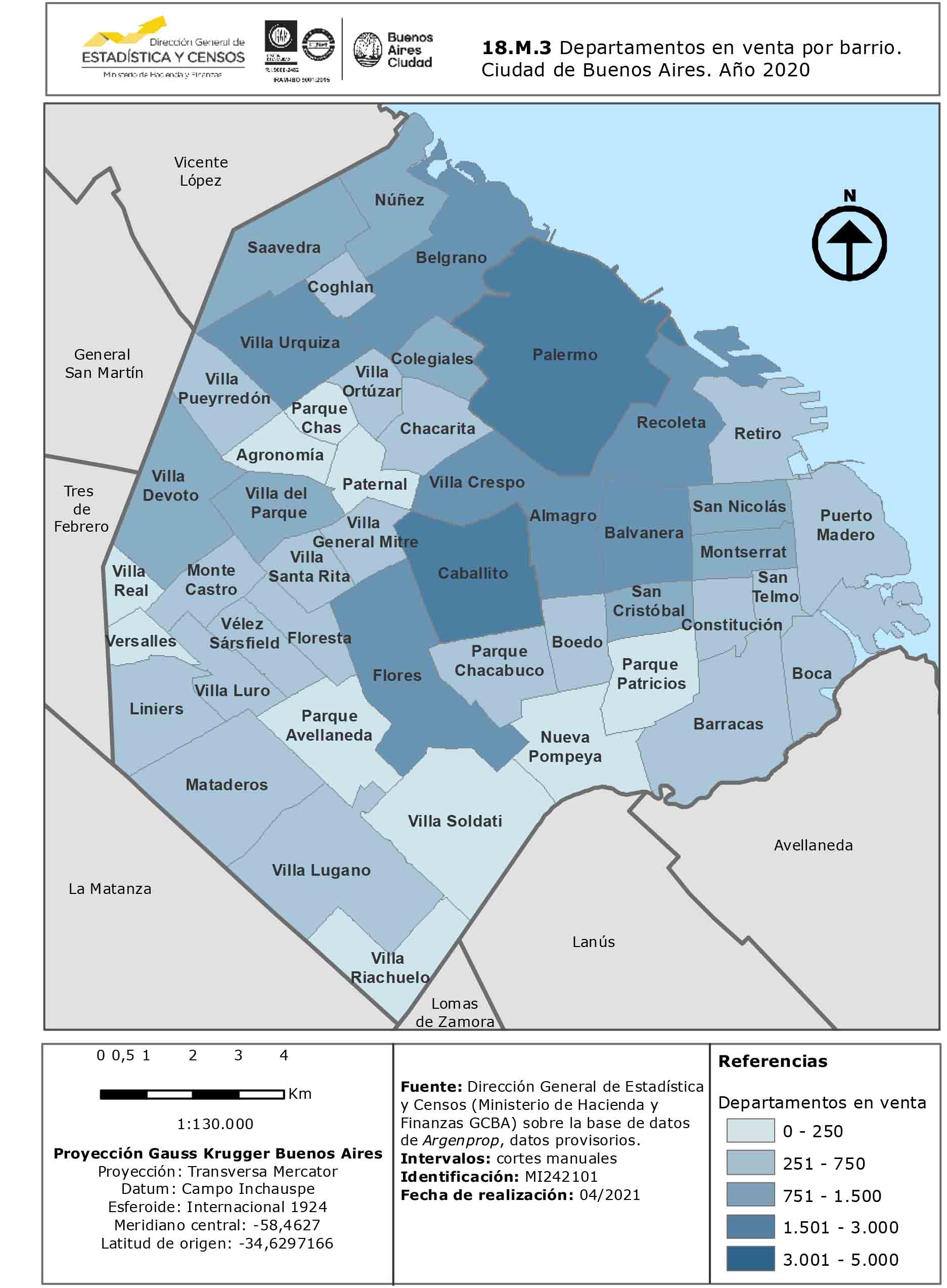 Departamentos en venta por barrio. Ciudad de Buenos Aires. Año 2020