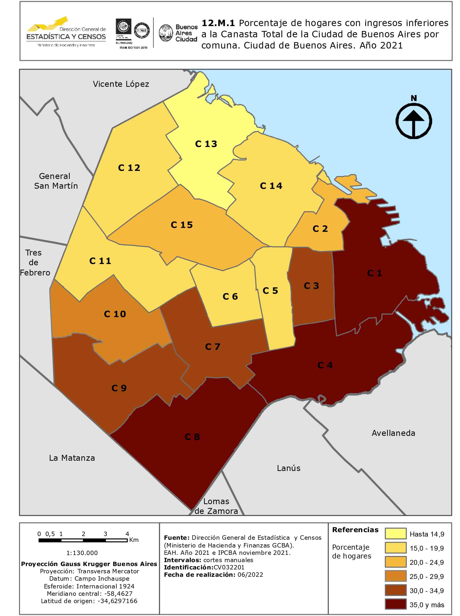 Porcentaje de hogares con ingresos inferiores a la Canasta Total de la Ciudad de Buenos Aires por comuna. Ciudad de Buenos Aires. Año 2021