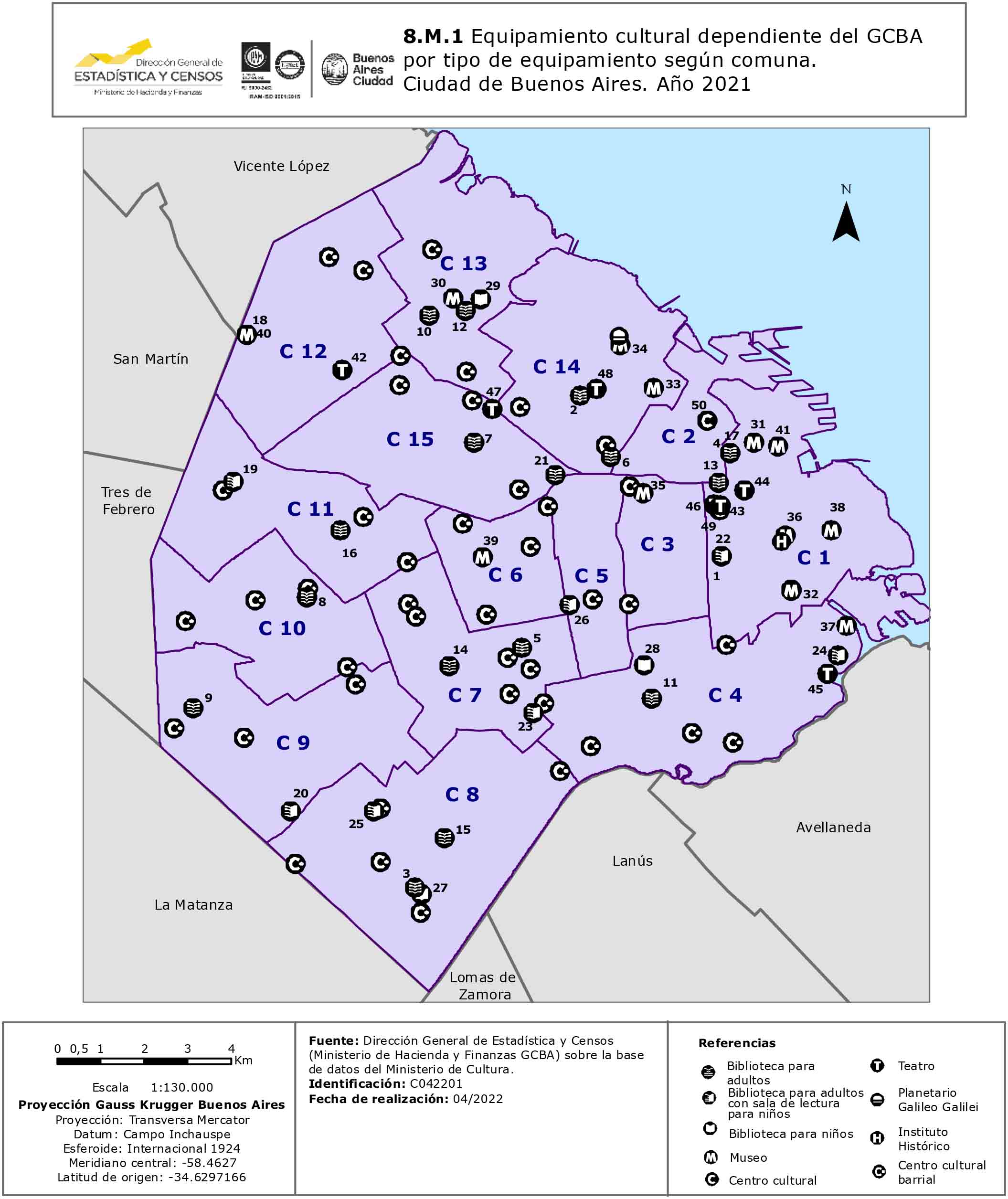 Equipamiento cultural dependiente del GCBA por tipo de equipamiento según comuna. Ciudad de Buenos Aires. Año 2021