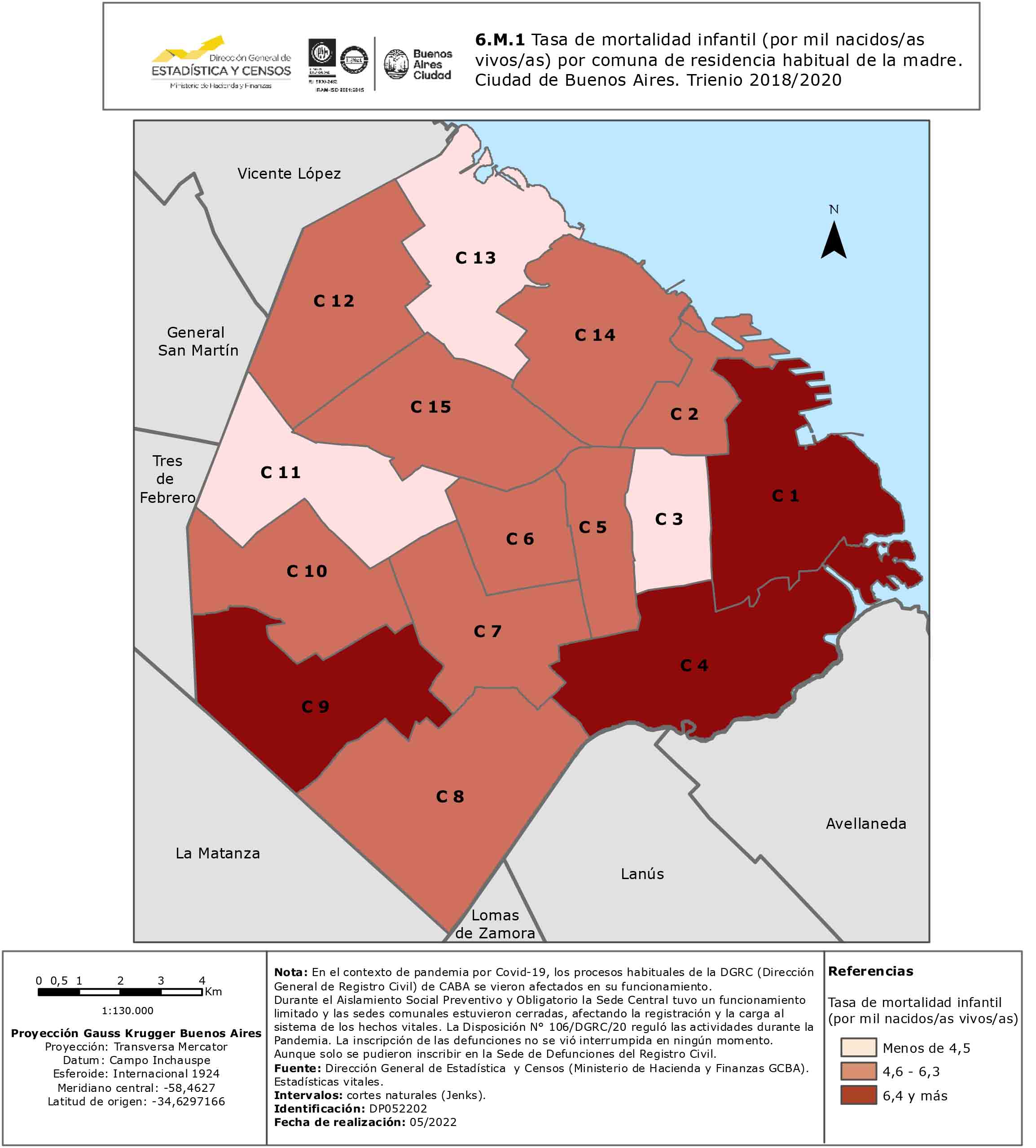 Tasa de mortalidad infantil (por mil nacidos/as vivos/as) por comuna de residencia habitual de la madre. Ciudad de Buenos Aires. Trienio 2018/2020