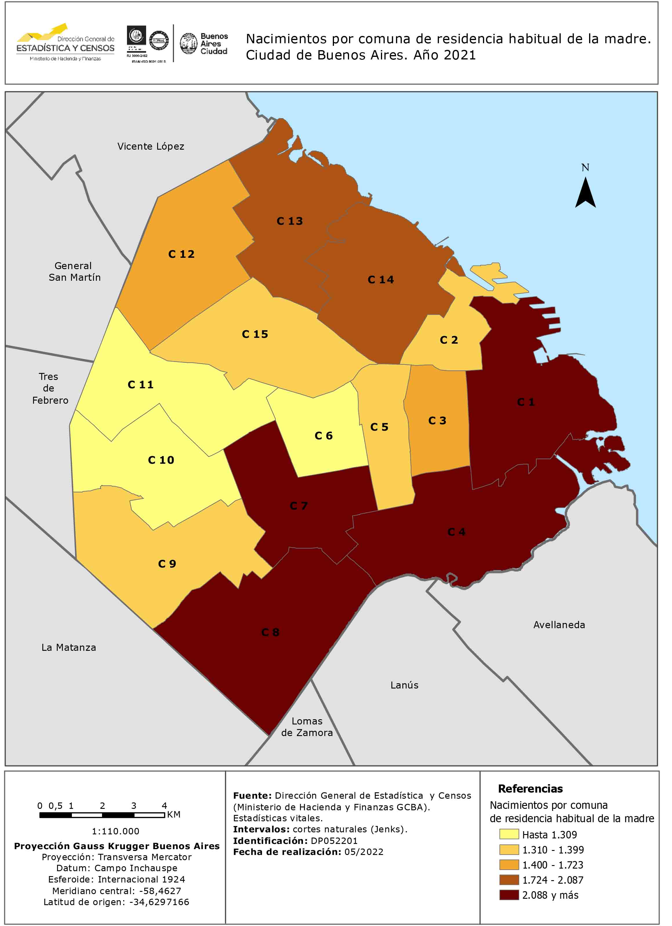 Nacimientos por comuna de residencia habitual de la madre. Ciudad de Buenos Aires. Año 2021