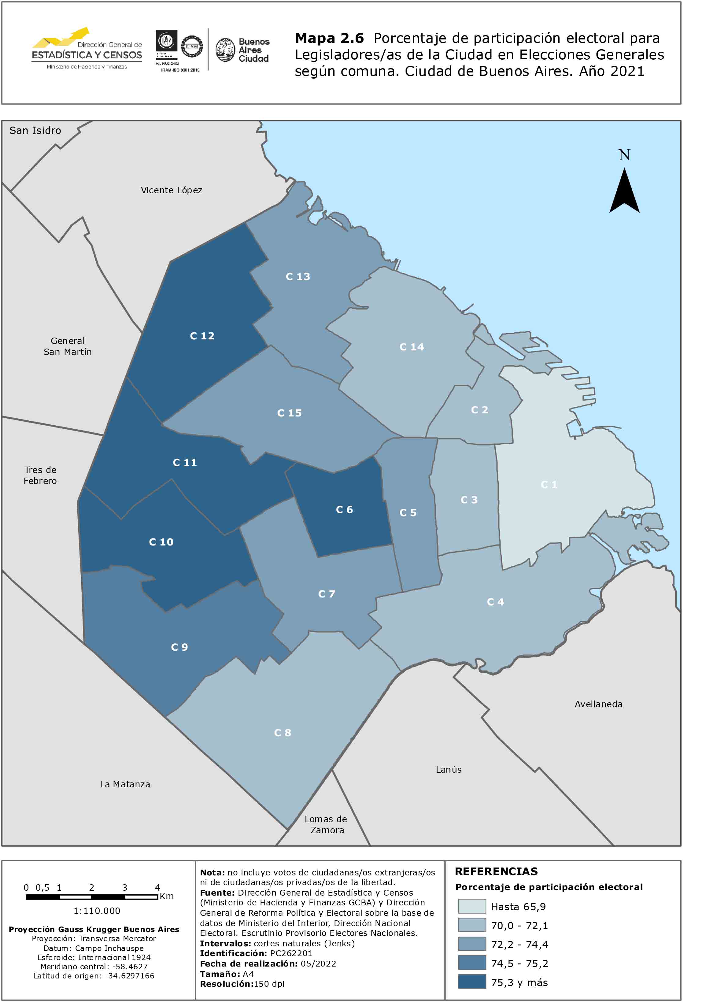Porcentaje de participación electoral para Legisladores/as de la Ciudad en Elecciones Generales según comuna. Ciudad de Buenos Aires. Año 2021