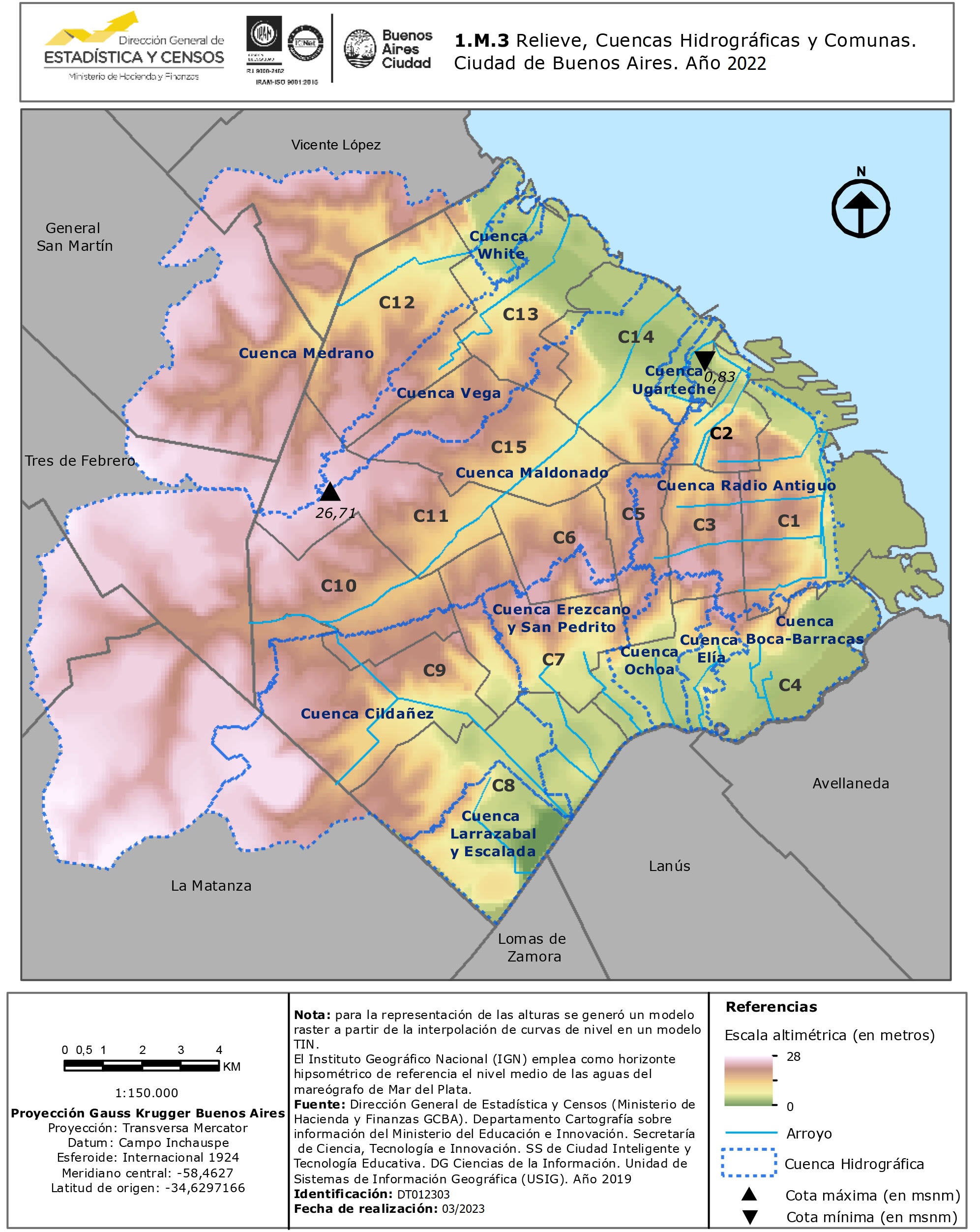 Relieve, Cuencas Hidrográficas y Comunas. Ciudad de Buenos Aires. Año 2020