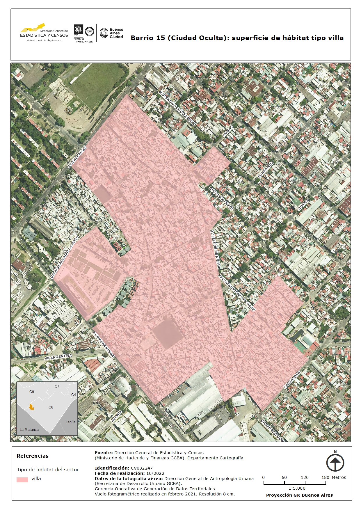Barrio 15 (Ciudad Oculta): superficie de hábitat tipo villa