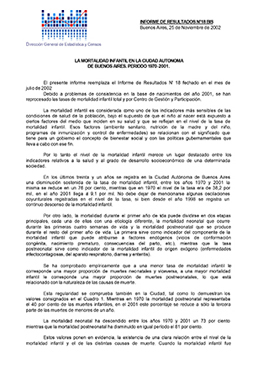 • Título: La mortalidad infantil en la Ciudad Autónoma de Buenos Aires: período 1970-2001 (Informe 18-BIS, que reemplaza al 18)