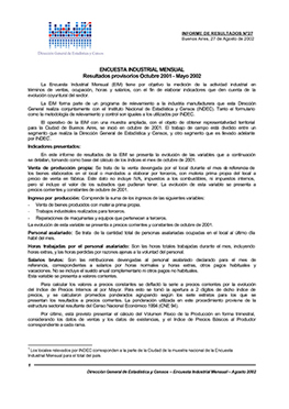 • Título: Encuesta Industrial Mensual: resultados provisorios octubre 2001-mayo 2002