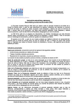 • Título: Encuesta Industrial Mensual: resultados provisorios, diciembre 2002