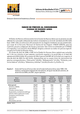 • Título: Índice de Precios al Consumidor: Ciudad de Buenos Aires, abril 2006
