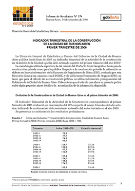 • Título: Indicador trimestral de la construcción de la Ciudad de Buenos Aires: primer trimestre 2006