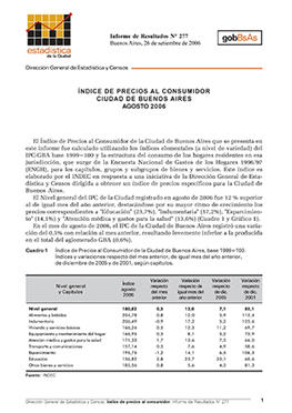 • Título: Índice de Precios al Consumidor: Ciudad de Buenos Aires, agosto 2006