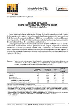 • Título: Mercado de trabajo: Ciudad de Buenos Aires, primer trimestre 2007 (1º informe de resultados)