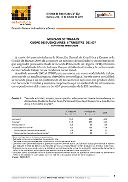 • Título: Mercado de trabajo, Ciudad de Buenos Aires: 2º trimestre 2007, 1º informe de resultados