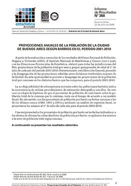 • Título: Proyecciones anuales de la población de la Ciudad de Buenos Aires según barrios en el período 2001-2010