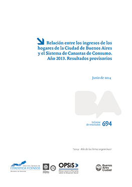 • Título: Relación entre los ingresos de los hogares de la Ciudad de Buenos Aires y el Sistema de Canastas de Consumo. Año 2013. Resultados provisorios