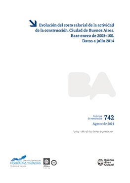 • Título: Evolución del costo salarial de la actividad de la construcción. Ciudad de Buenos Aires. Base enero de 2003=100. Datos a julio 2014