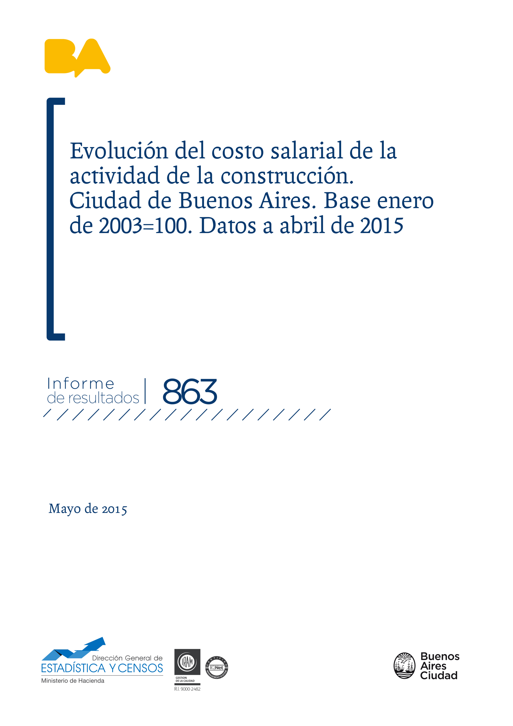 • Título: Evolución del costo salarial de la actividad de la construcción. Ciudad de Buenos Aires. Base enero de 2003=100. Datos a abril de 2015