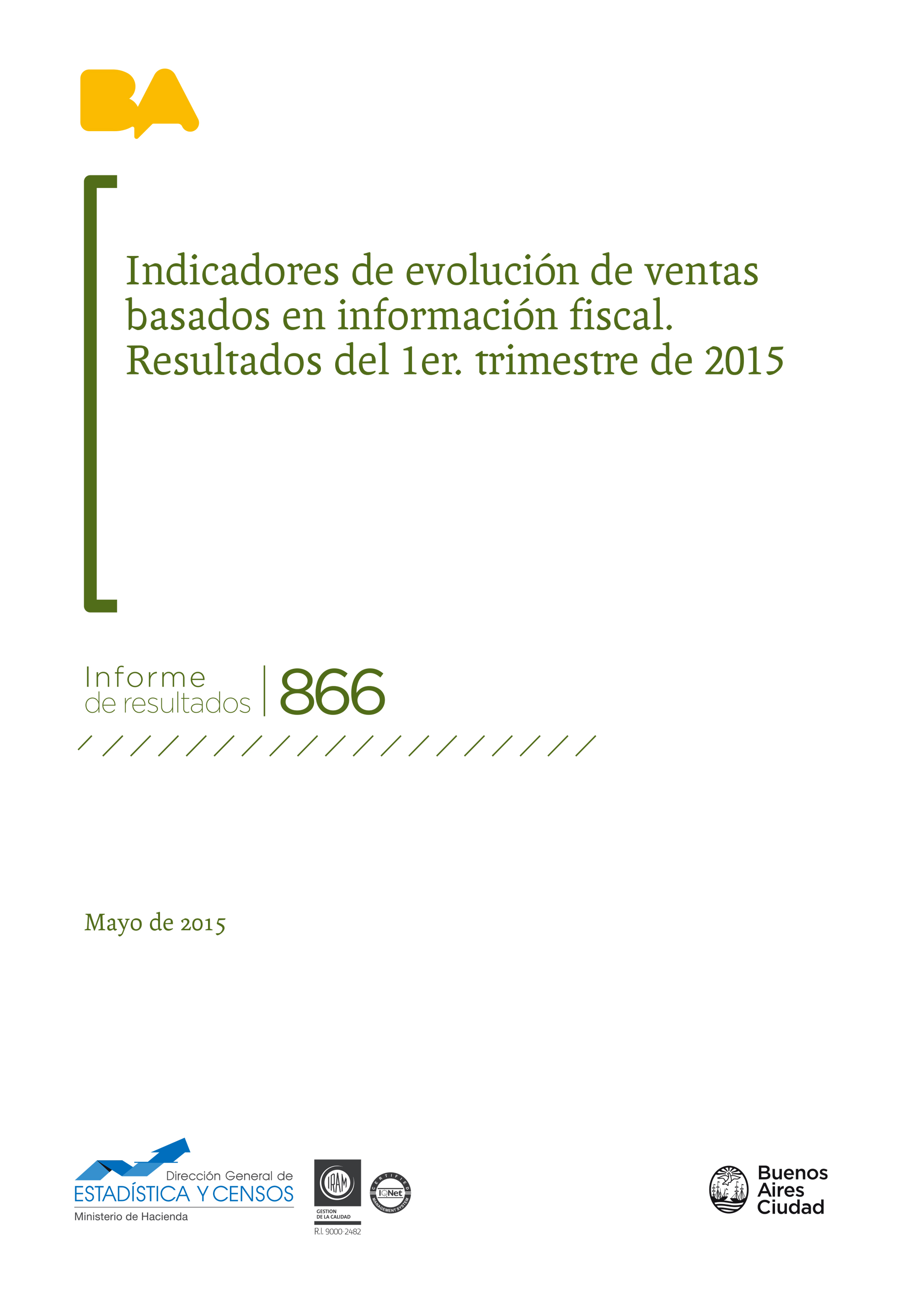 • Título: Indicadores de evolución de ventas basados en información fiscal. Resultados del 1er. trimestre de 2015