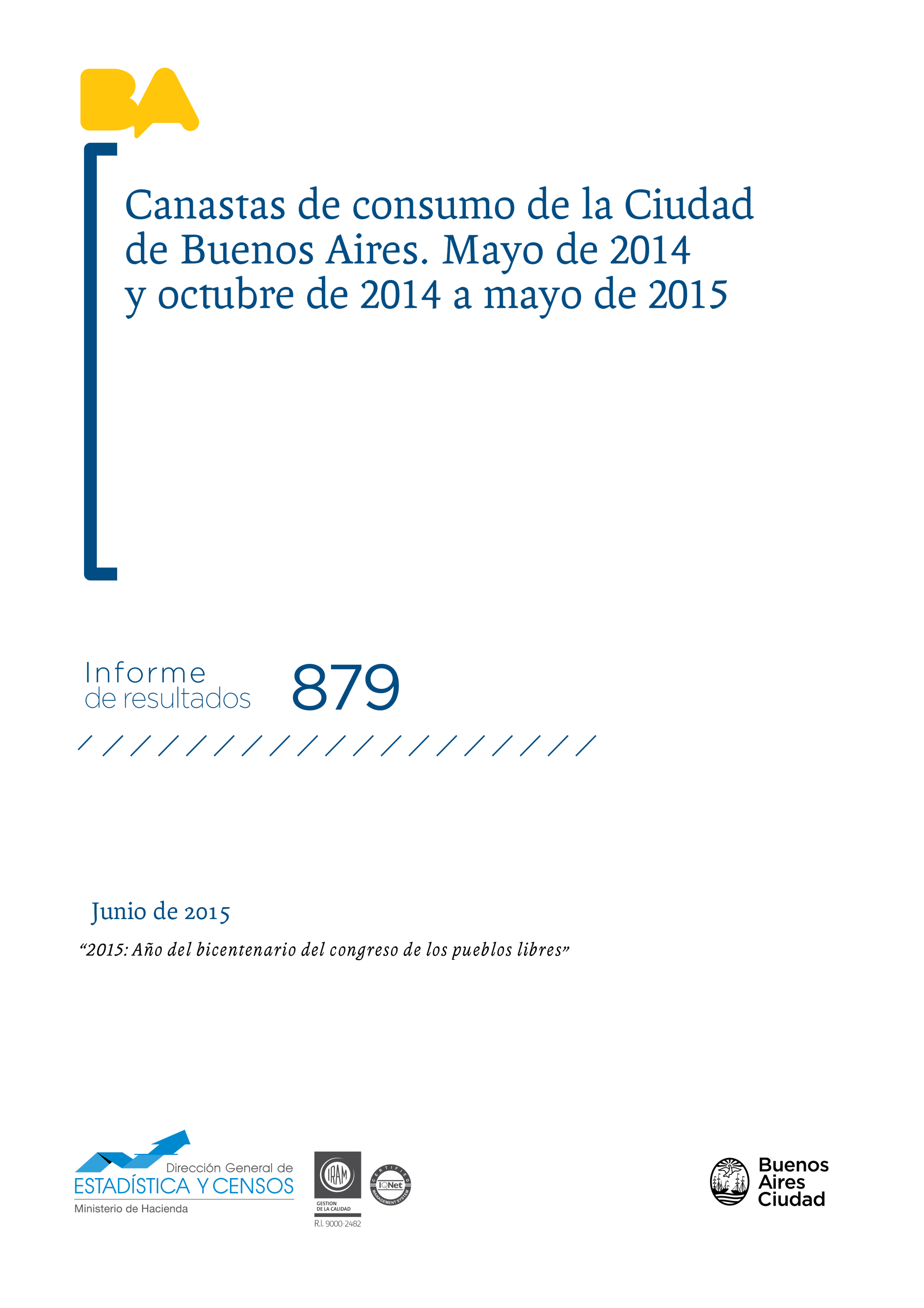 • Título: Canastas de consumo de la Ciudad de Buenos Aires. Mayo de 2014 y octubre de 2014 a mayo de 2015