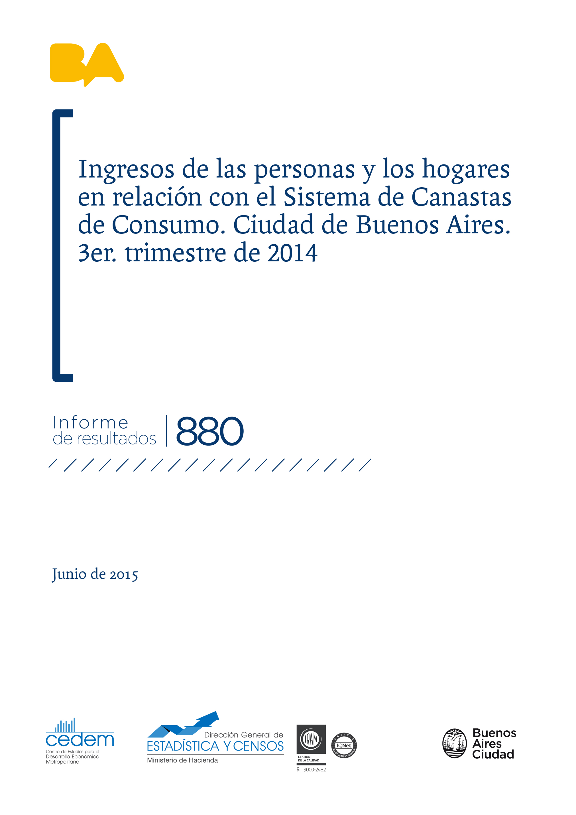 • Título: Ingresos de las personas y los hogares en relación con el Sistema de Canastas de Consumo. Ciudad de Buenos Aires. 3er. trimestre de 2014