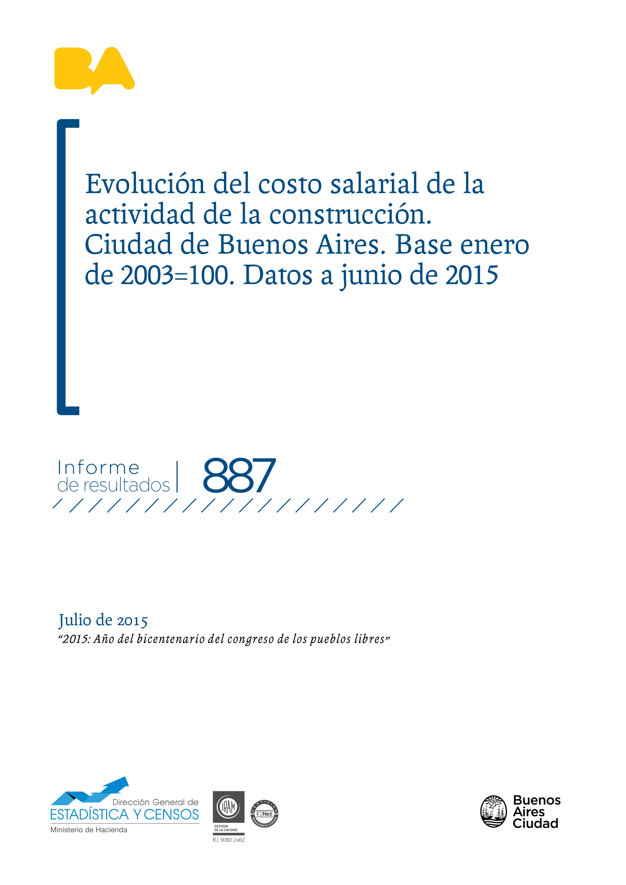 • Título: Evolución del costo salarial de la actividad de la construcción. Ciudad de Buenos Aires. Base enero de 2003=100. Datos a junio de 2015