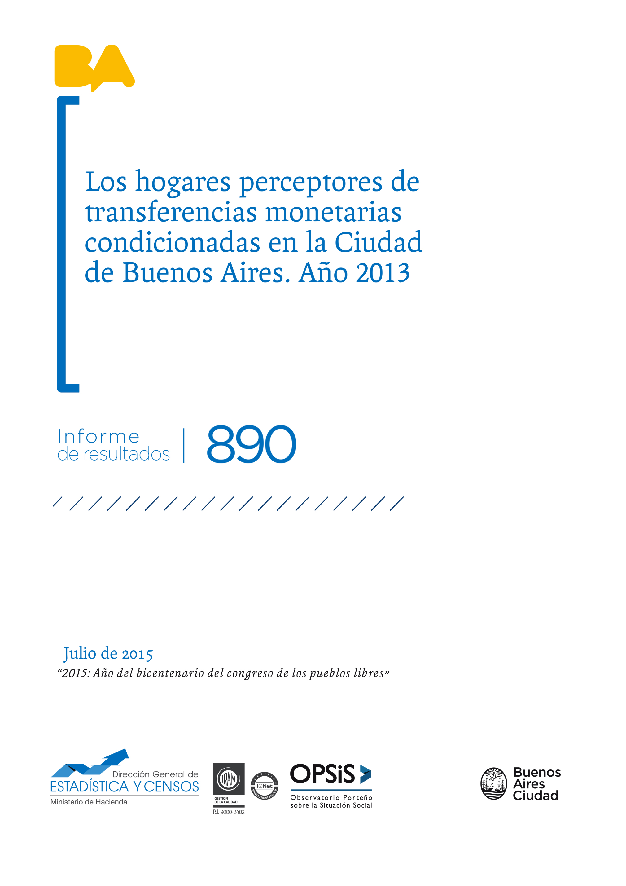 • Título: Los hogares perceptores de transferencias monetarias condicionadas en la Ciudad de Buenos Aires. Año 2013