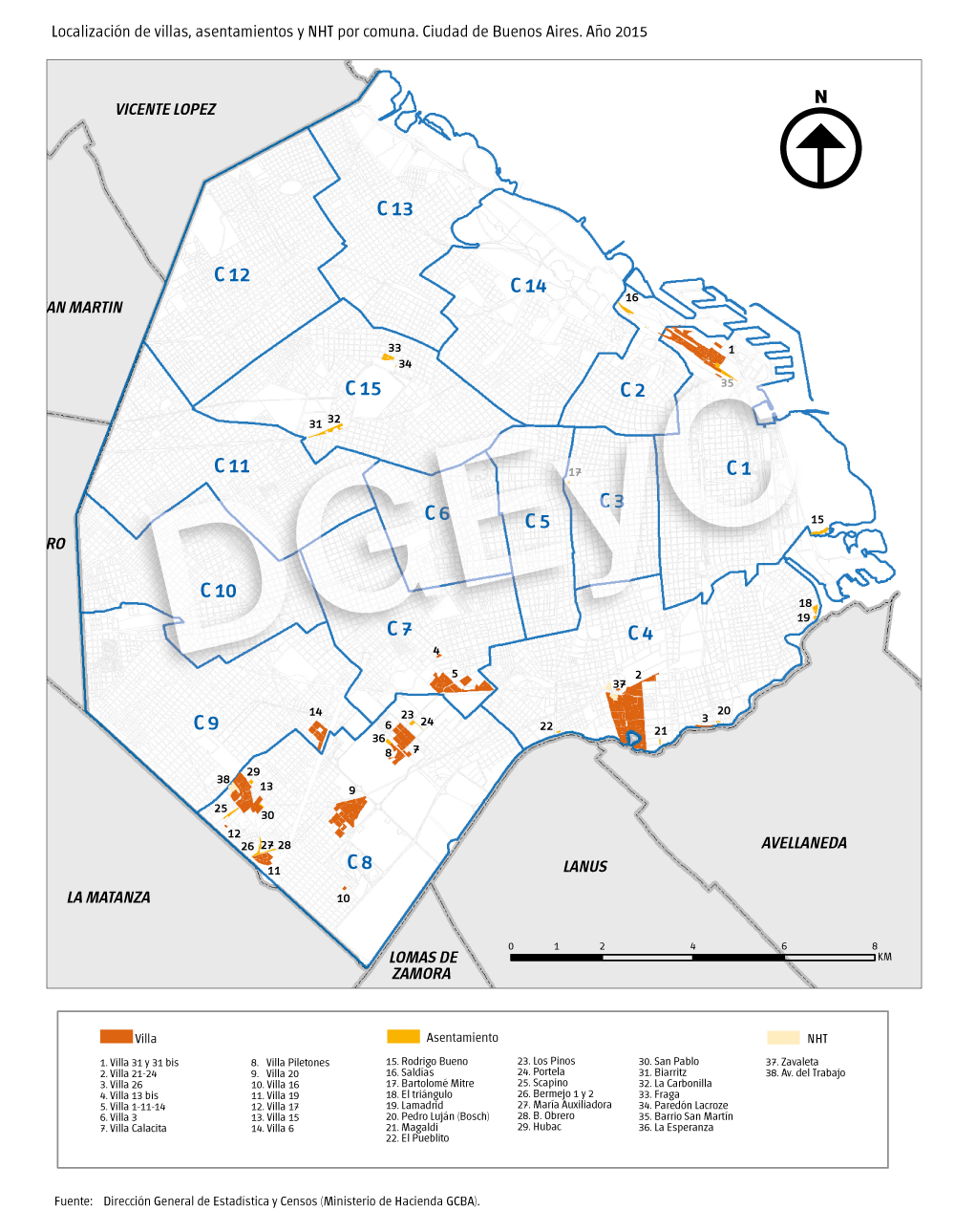 Mapa de Villas y Asentamientos por Comuna. Año 2015
