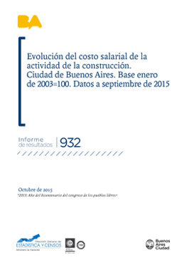 • Título: Evolución del costo salarial de la actividad de la construcción. Ciudad de Buenos Aires. Base enero de 2003=100. Datos a septiembre de 2015