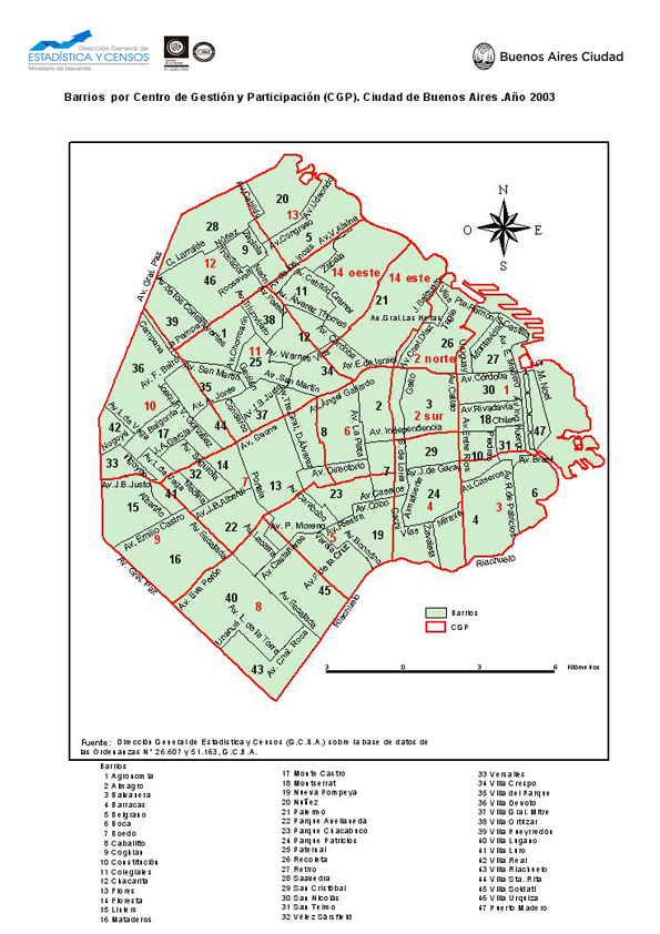 Centros de Gestión y Participación Ciudadana (CGP) según Barrios. Ciudad de Buenos Aires. Año 2003