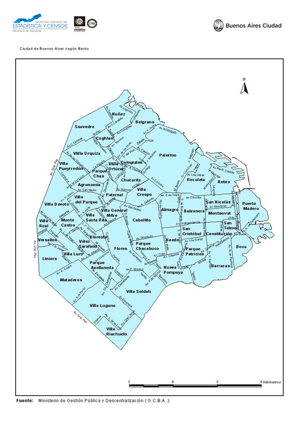 Ciudad de Buenos Aires según Barrio con límite de calles. Año 2007