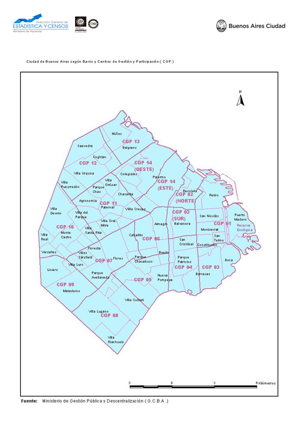 Ciudad de Buenos Aires según barrio y centro de gestión y participación. Año 2007